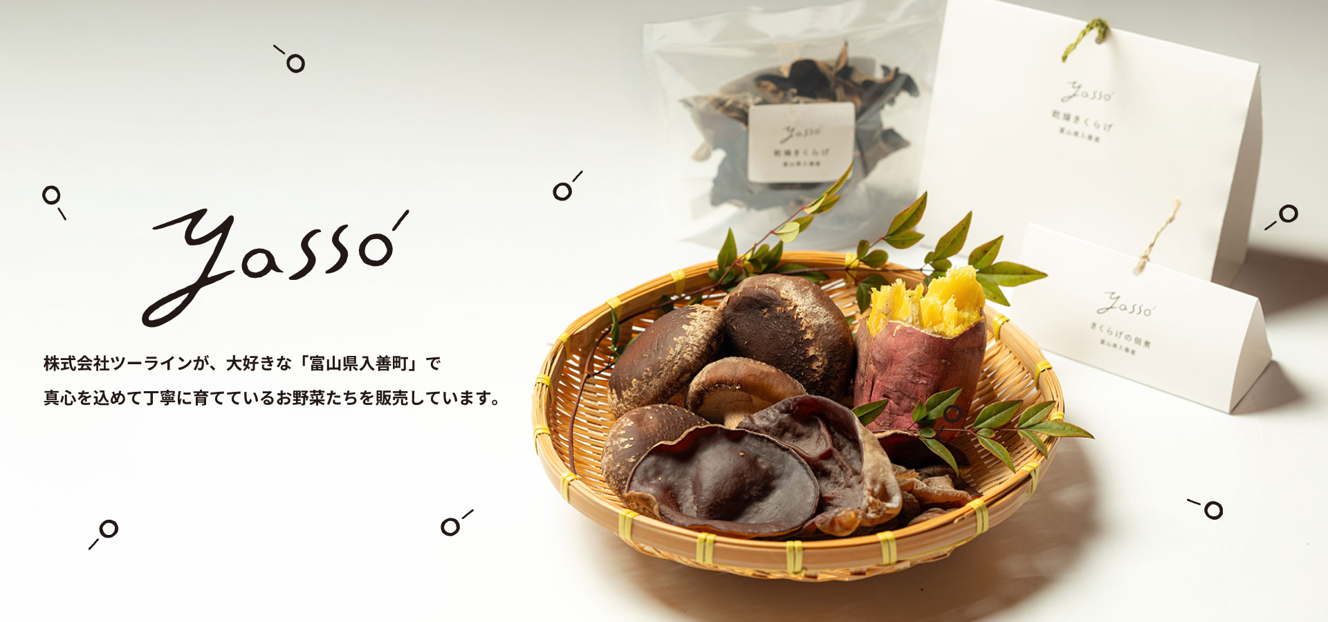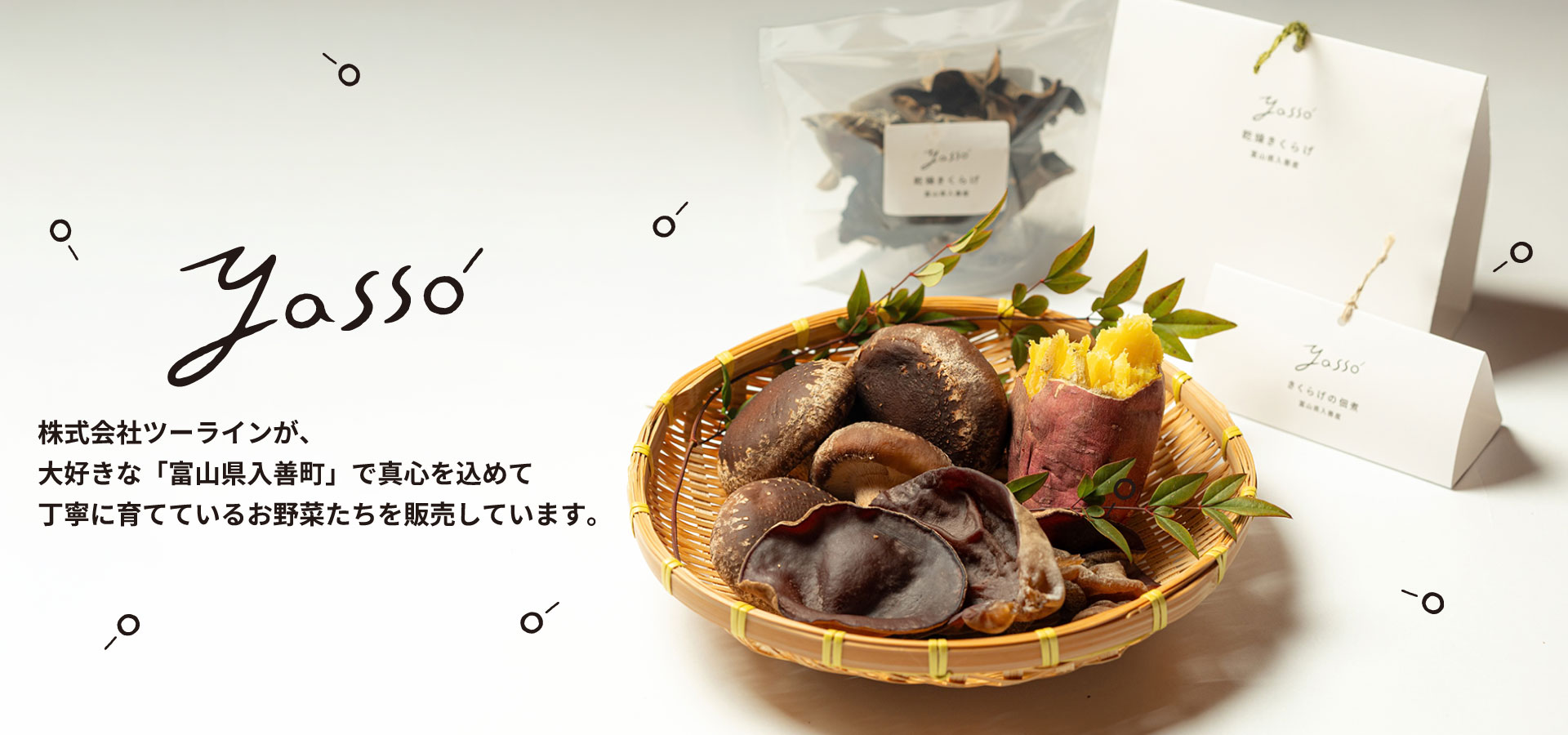 北アルプス立山連峰の伏流水と、澄んだ山あいの空気に育まれたYassoのきくらげ。肉厚で艶やか、澄んだ旨みが広がります。